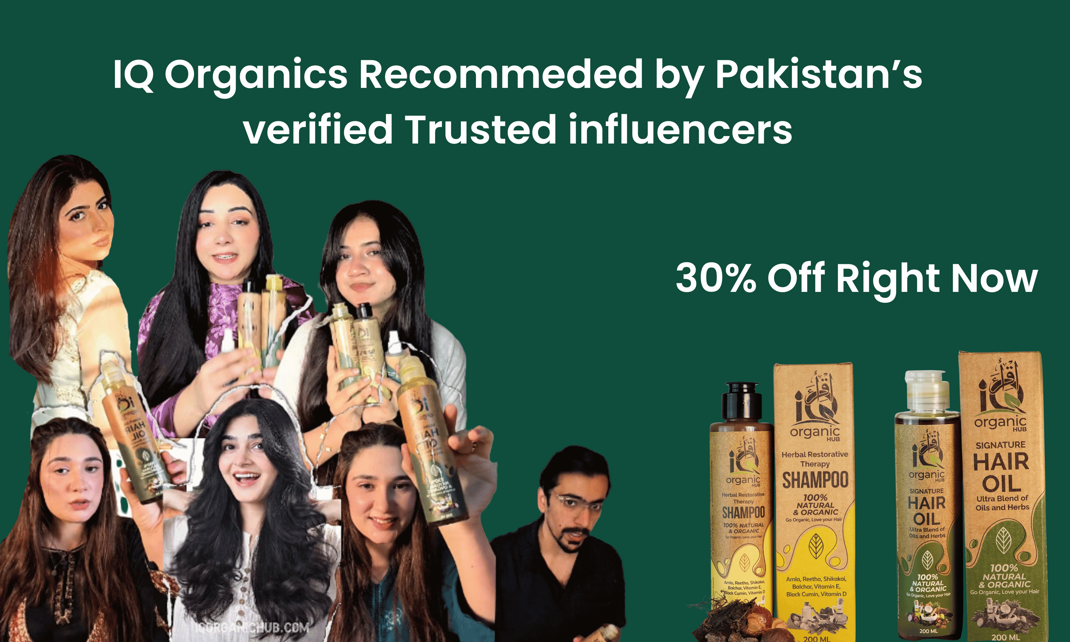 At [IQ ORGANIC HUB], we blend ancient hair secrets with modern luxury.Made with 100% natural, cold-pressed oils — no chemicals, no compromise.Recommended by Pakistan’s biggest influencers for stronger, shinier, healthier hair.